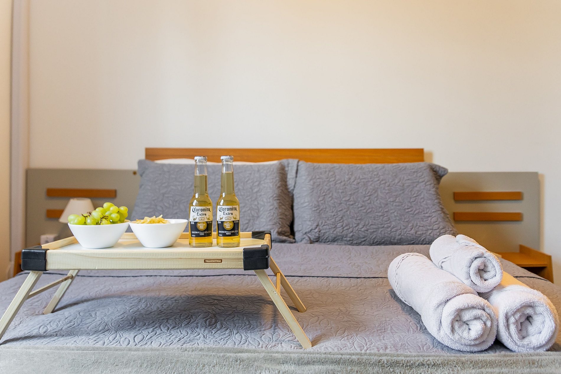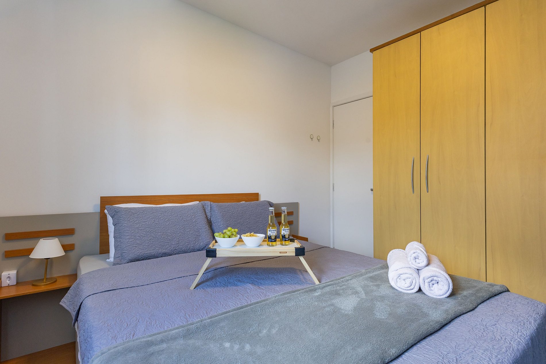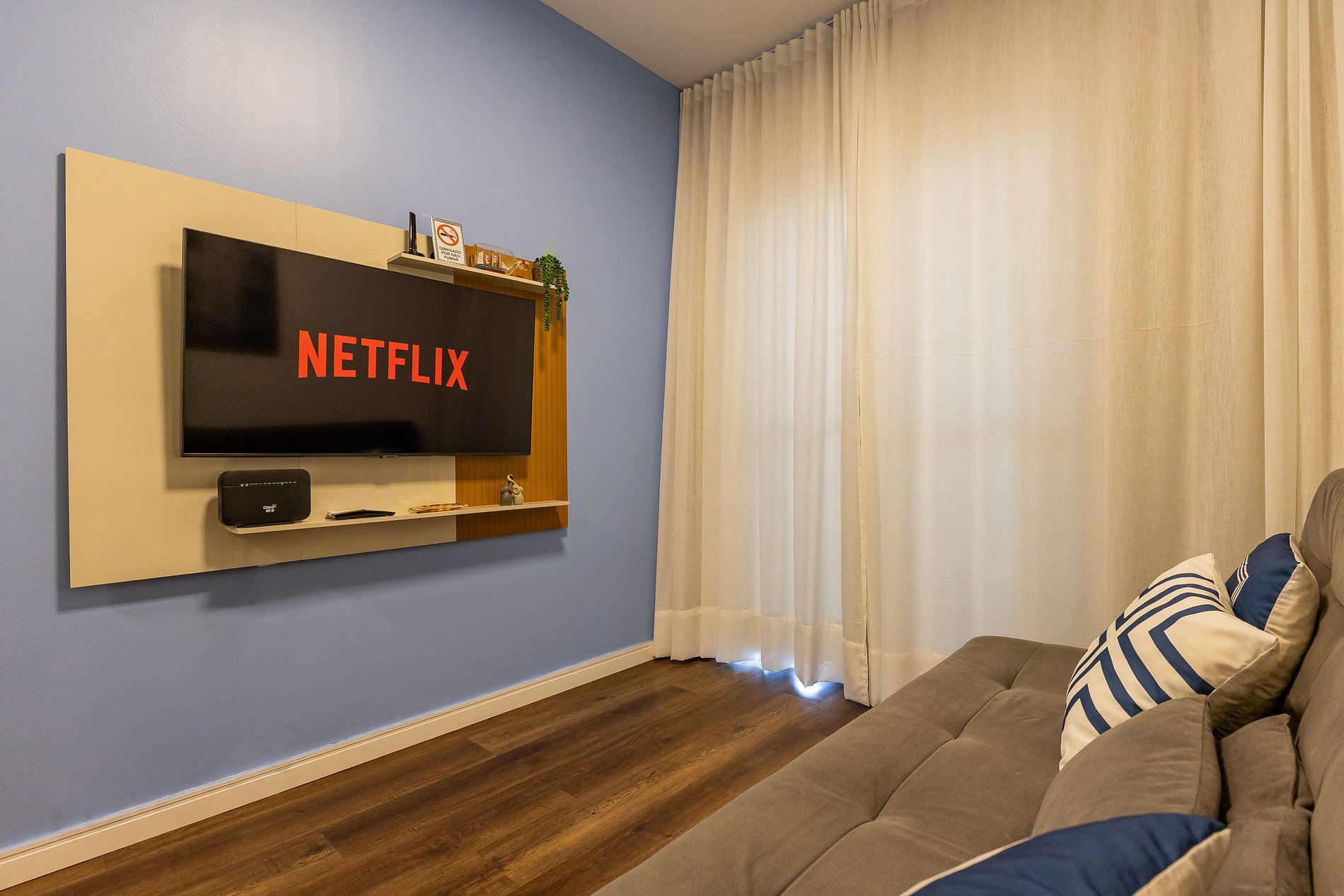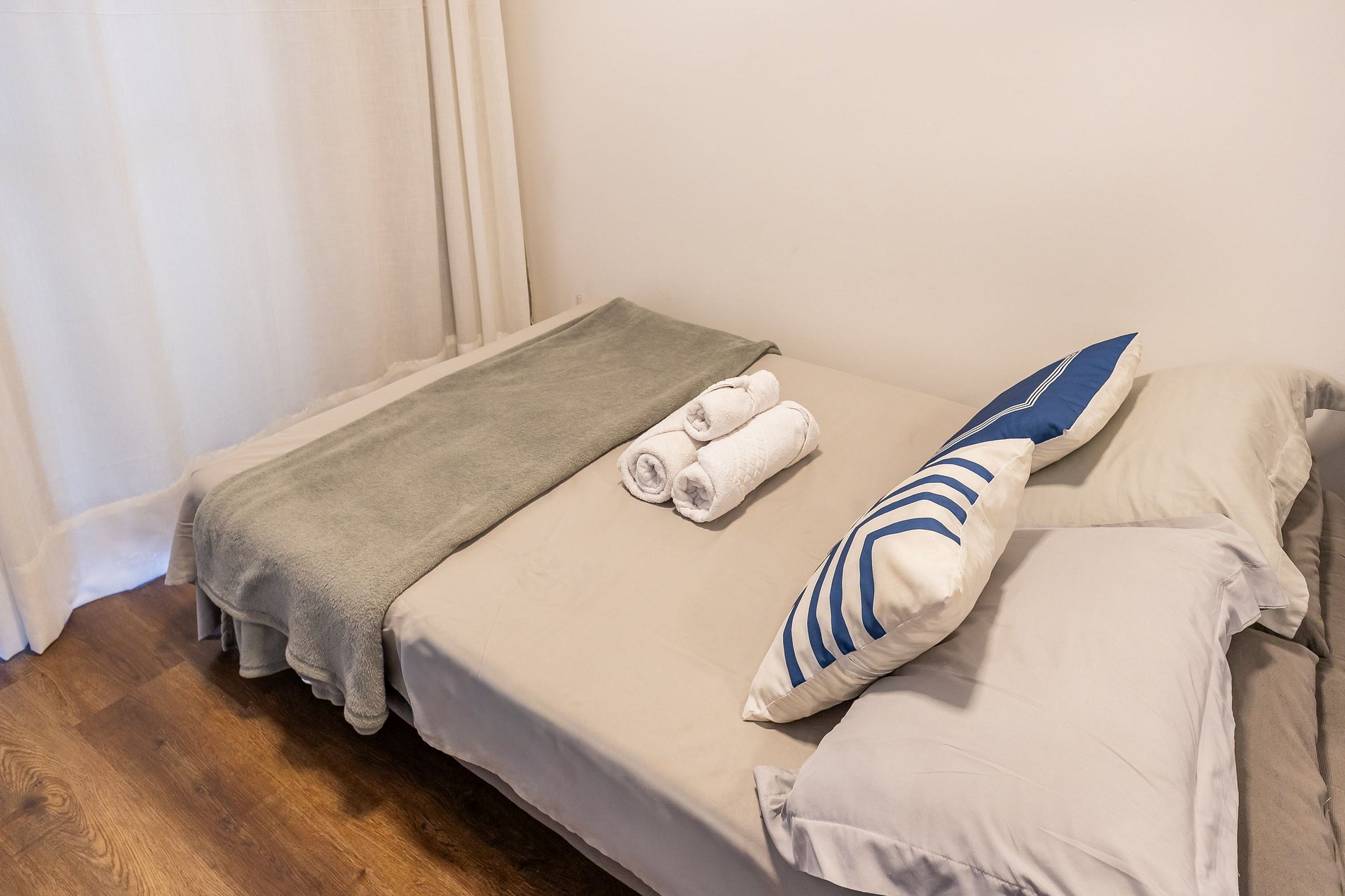 O apartamento oferece Wi-Fi, Smart TV, uma cama de casal confortável e um sofá-cama, acomodando até duas pessoas extras com comodidade.