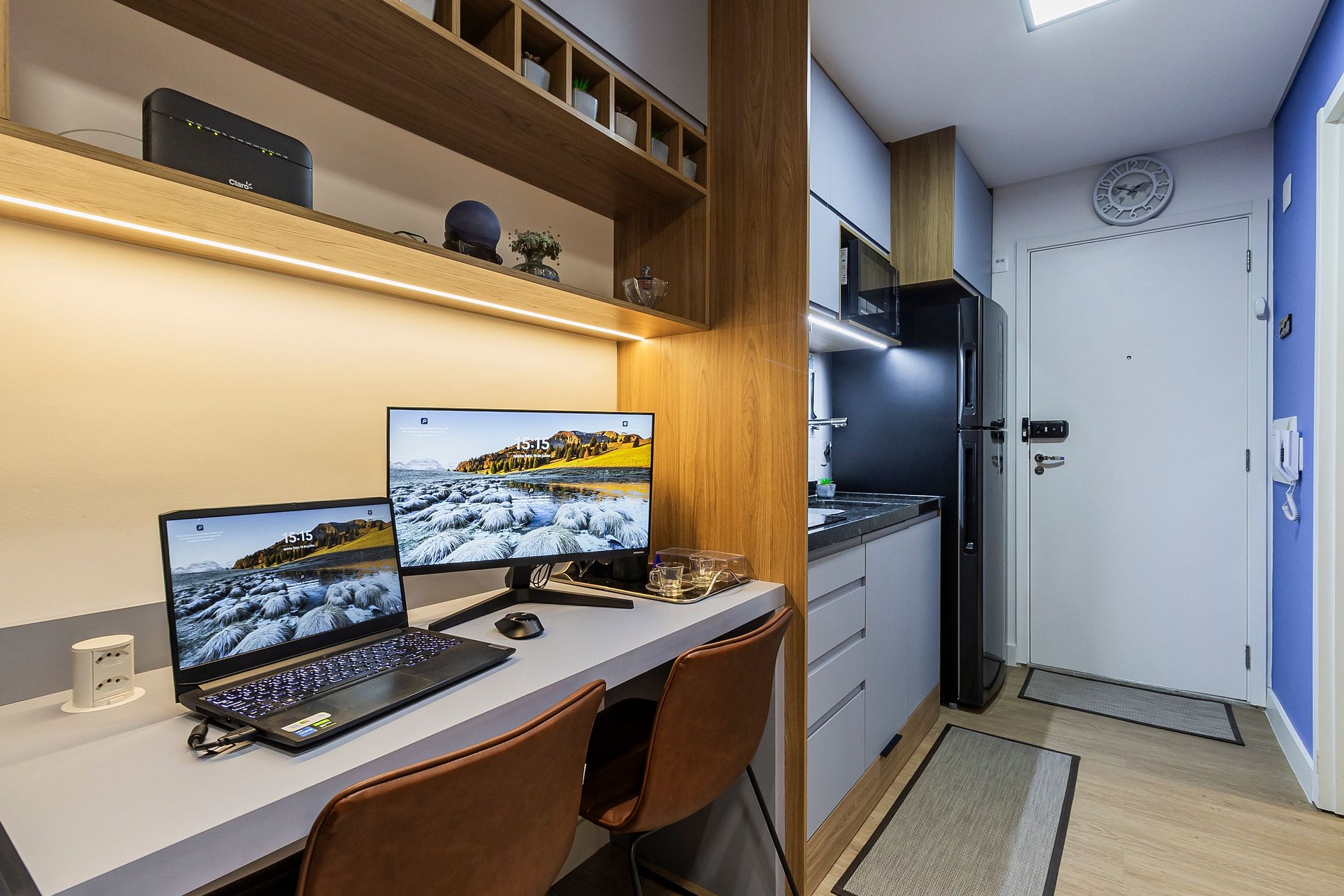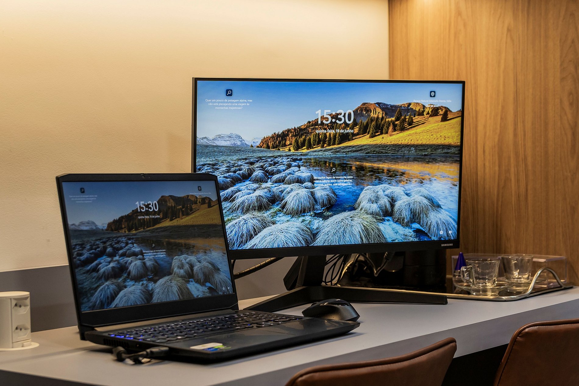 • Espaço pronto para uso de notebook